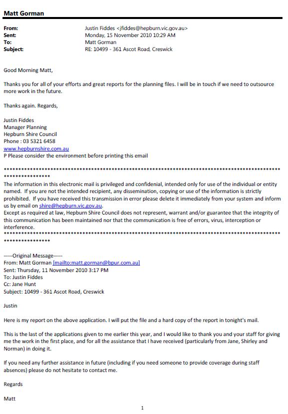 Manager Planning of Hepburn Shire Council at end (at that time) of application processing and report writing by BPUR