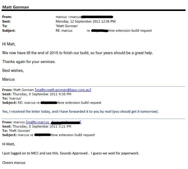 client after receiving news of council approval of request to extend