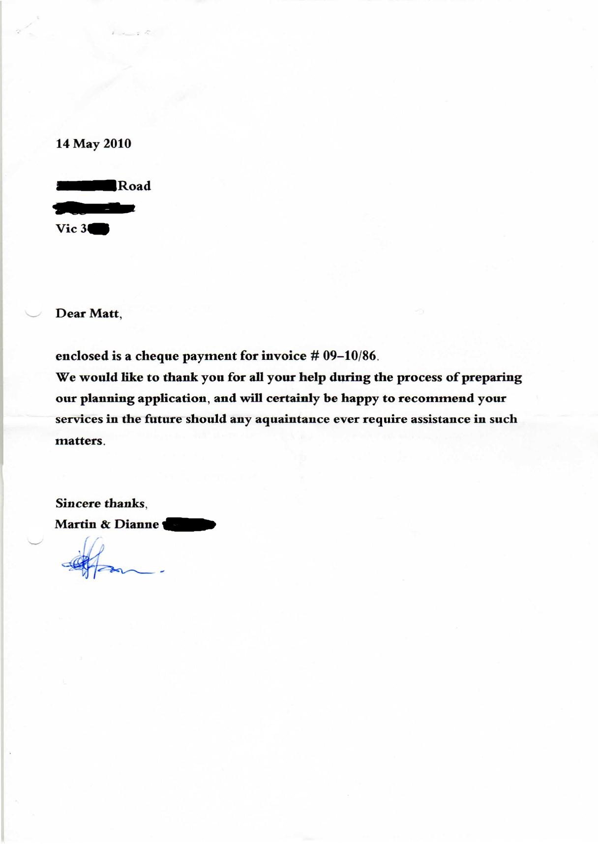 Letter from private clients in