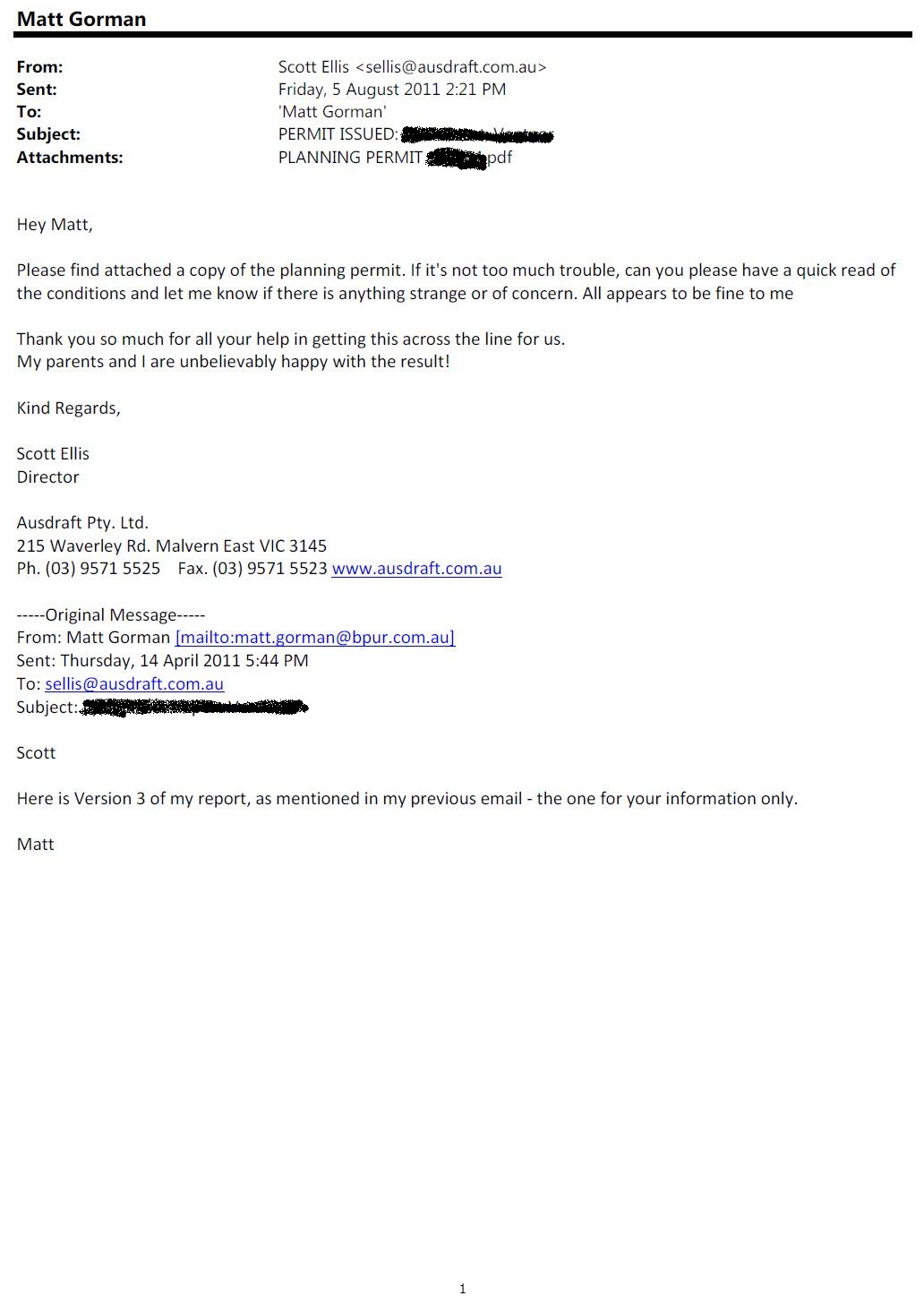 Email from designer Scott